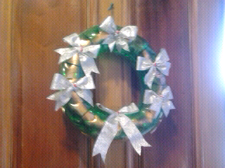 Esta semana, num cafézinho em S. João da Madeira, despertou a minha atenção esta coroa, pela simplicidade e criatividade com que foi feita...uma base toda ela feita com amendoins, pintados de cor prata e por cima um pequeno detalhe, aplicação de uma rosa vermelha! Reinventem, vale a pena ;-)!